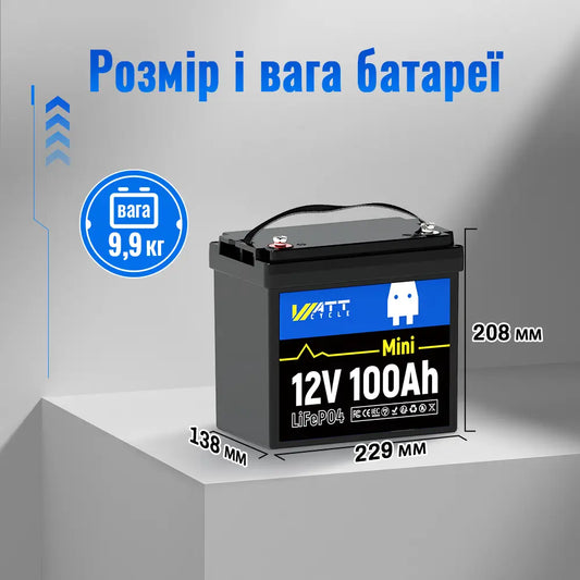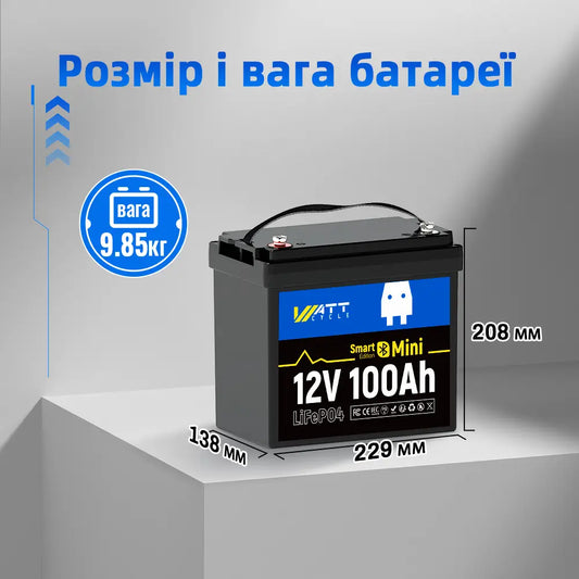 Акумулятор WattCycle 12V 100Ah Mini Bluetooth LiFePO4