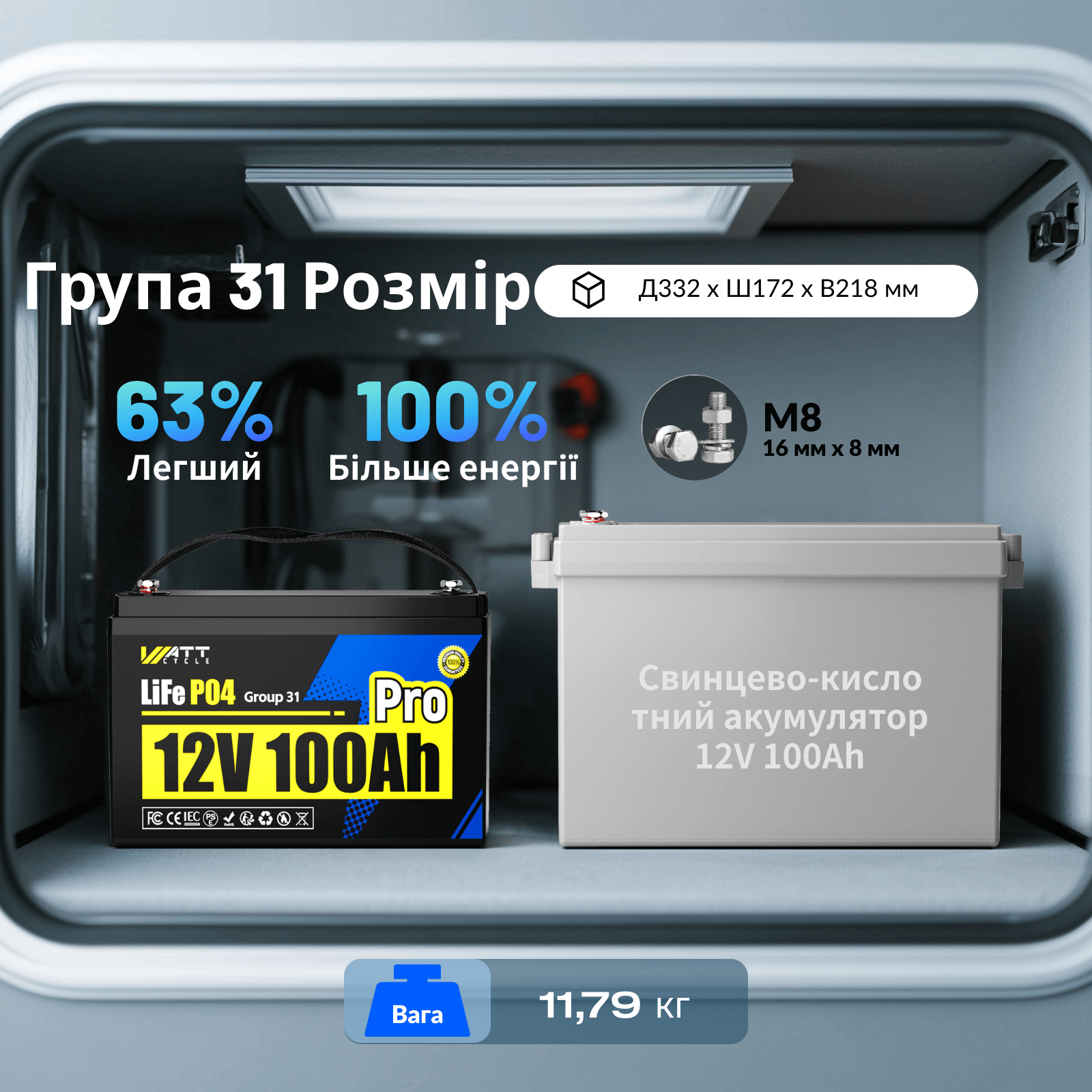 WattCycle Aккумулятор LiFePO4 12V 100Ah Pro