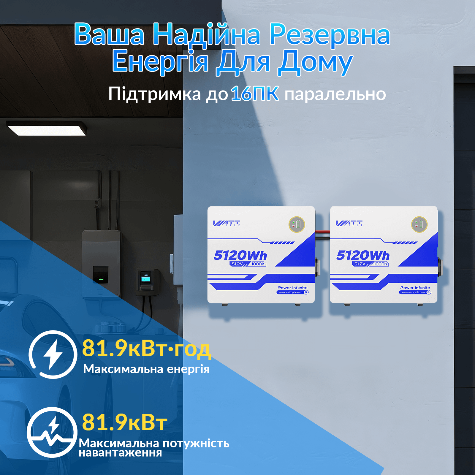 WattCycle Акумулятор LiFePO4 48V 100Ah настінний
